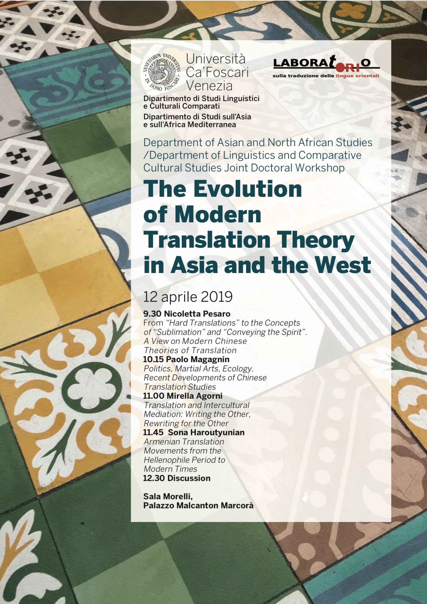 Joint Doctoral Workshop: The Evolution of Modern Translation Theory in Asia and the West relatori: Mirella Agorni, Sona Haroutyunian, Paolo Magagnin, Nicoletta Pesaro