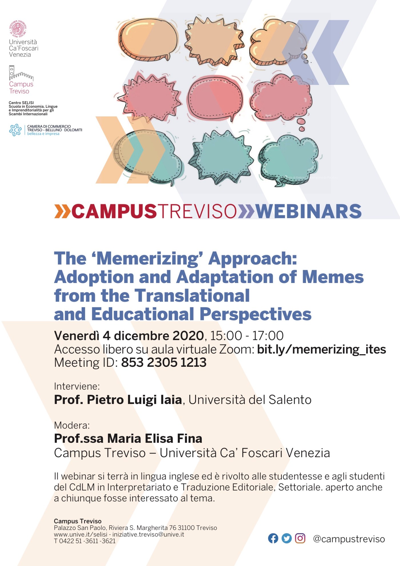 L’accesso è libero, il link per collegarsi su zoom è: bit.ly/memerizing_ites