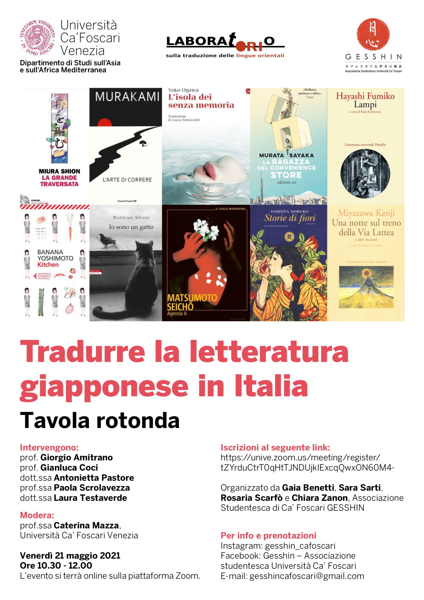 La professione del traduttore non è però tra le più semplici e il mercato editoriale italiano resta assai asfittico: lo scopo di questa tavola rotonda – organizzata nell’ambito del corso di Traduzione letteraria (Giappone) del LICAAM – è dare la possibilità agli studenti dei corsi di lingua e letteratura giapponese del nostro Ateneo e a tutti i numerosi interessati a questa tematica, di incontrare “dal vivo” i traduttori, sentire la loro diretta testimonianza su quella che per molti è la professione che spererebbero di intraprendere in futuro. Abbiamo per questa ragione pensato di coinvolgere traduttori letterari professionisti e docenti universitari che si sono occupati direttamente di traduzione, per comprendere le dinamiche del mercato editoriale interessato a questo specifico settore della letteratura in lingua straniera, nonché le difficoltà che la pratica traduttiva comporta.