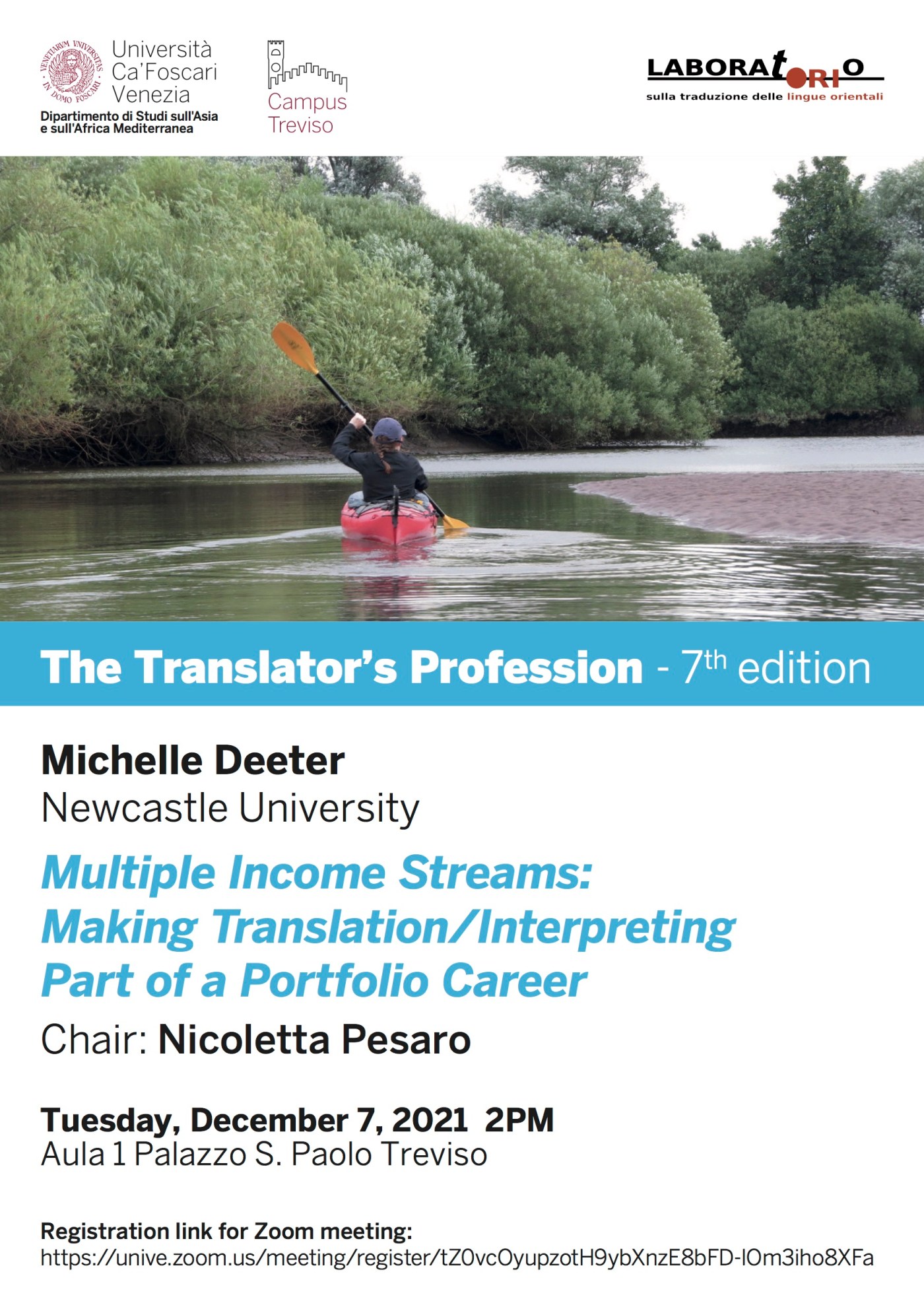 Riprendono le conferenze della VII edizione del ciclo The Translator’s Profession con la conferenza di Michelle Deeter (Newcastle University) Multiple Income Streams: Making Translation/Interpreting Part of a Portfolio Career