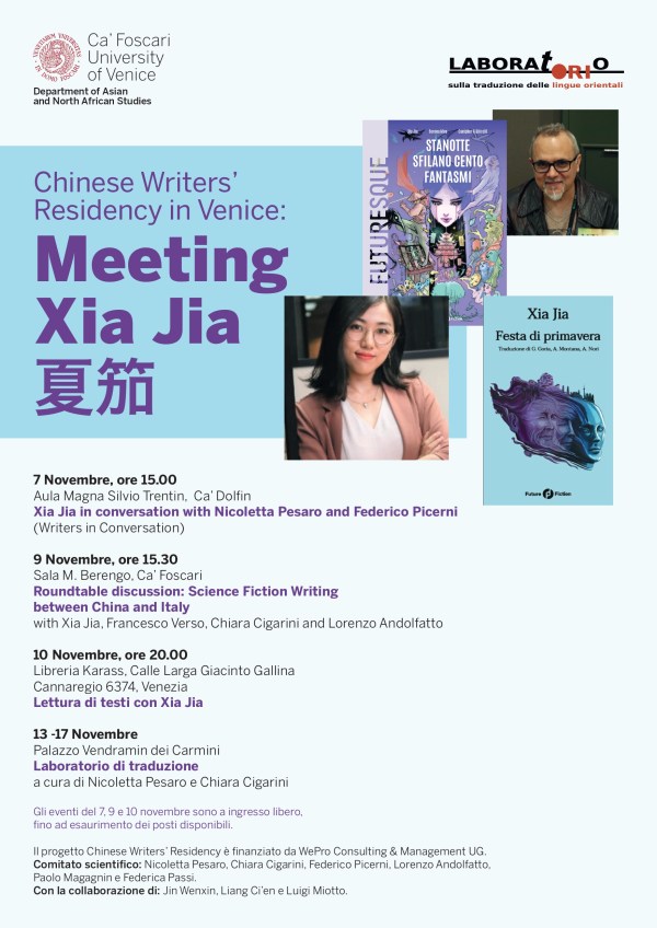 9 novembre – Sala M. Berengo, Ca’ Foscari – 15.30: Roundtable discussion: Science Fiction Writing between China and Italy with Xia Jia, Francesco Verso, Chiara Cigarini and Lorenzo Andolfatto